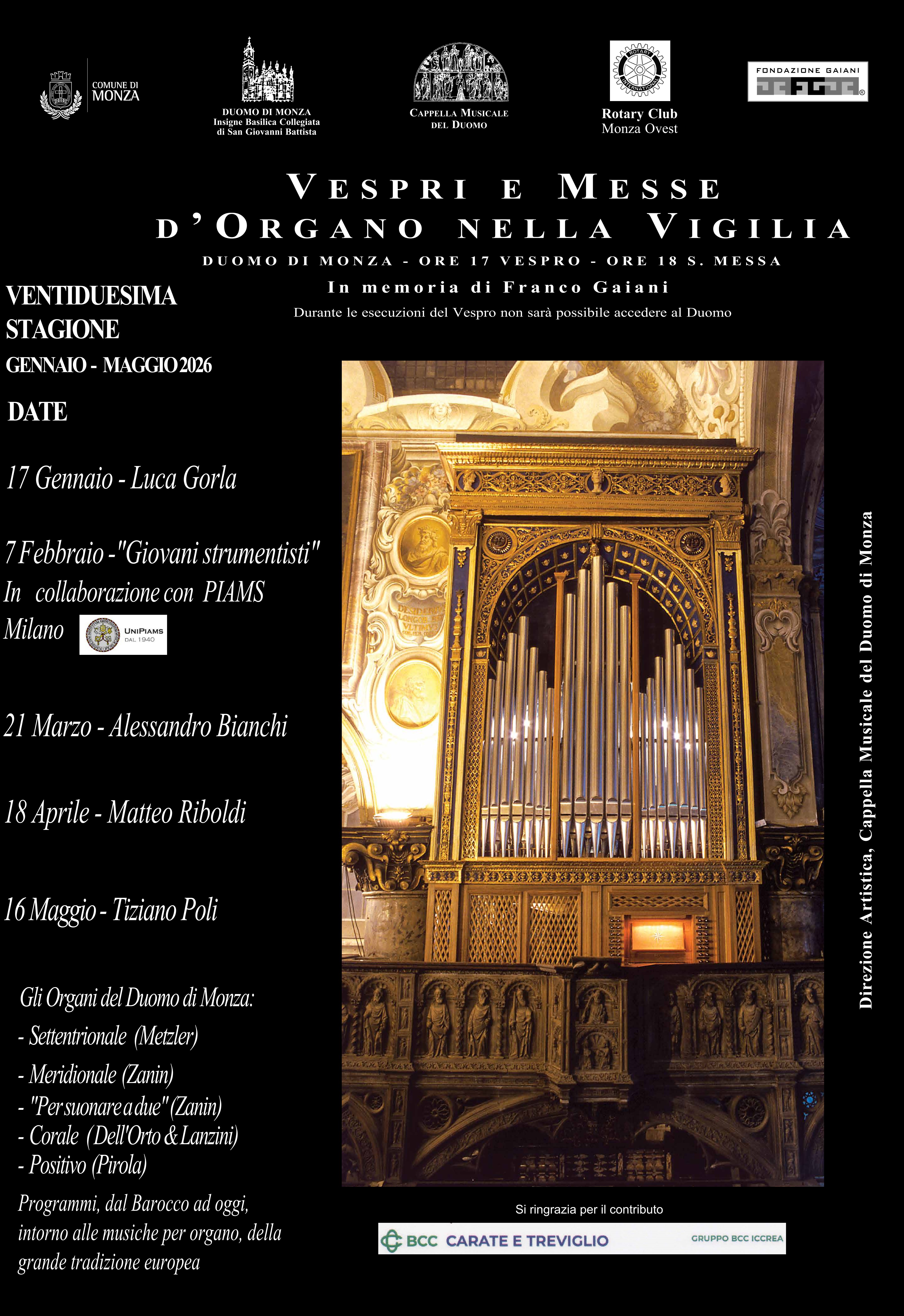 Vespri e Messe d'organo nella Vigilia - Ventesima Stagione - 17 Febbraio 2024