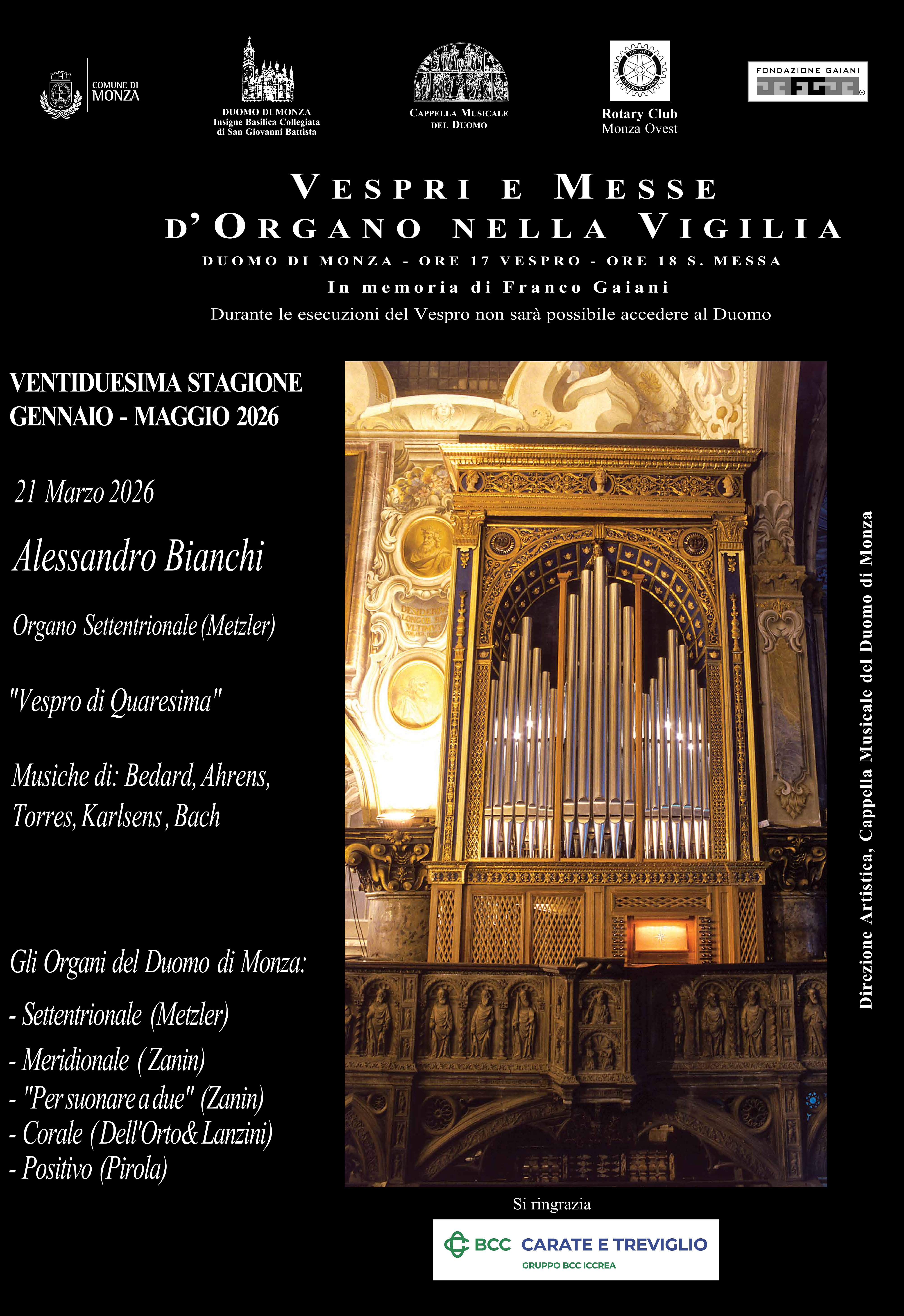 Vespri e Messe d'organo nella Vigilia - Ventesima Stagione - 16 Marzo 2024